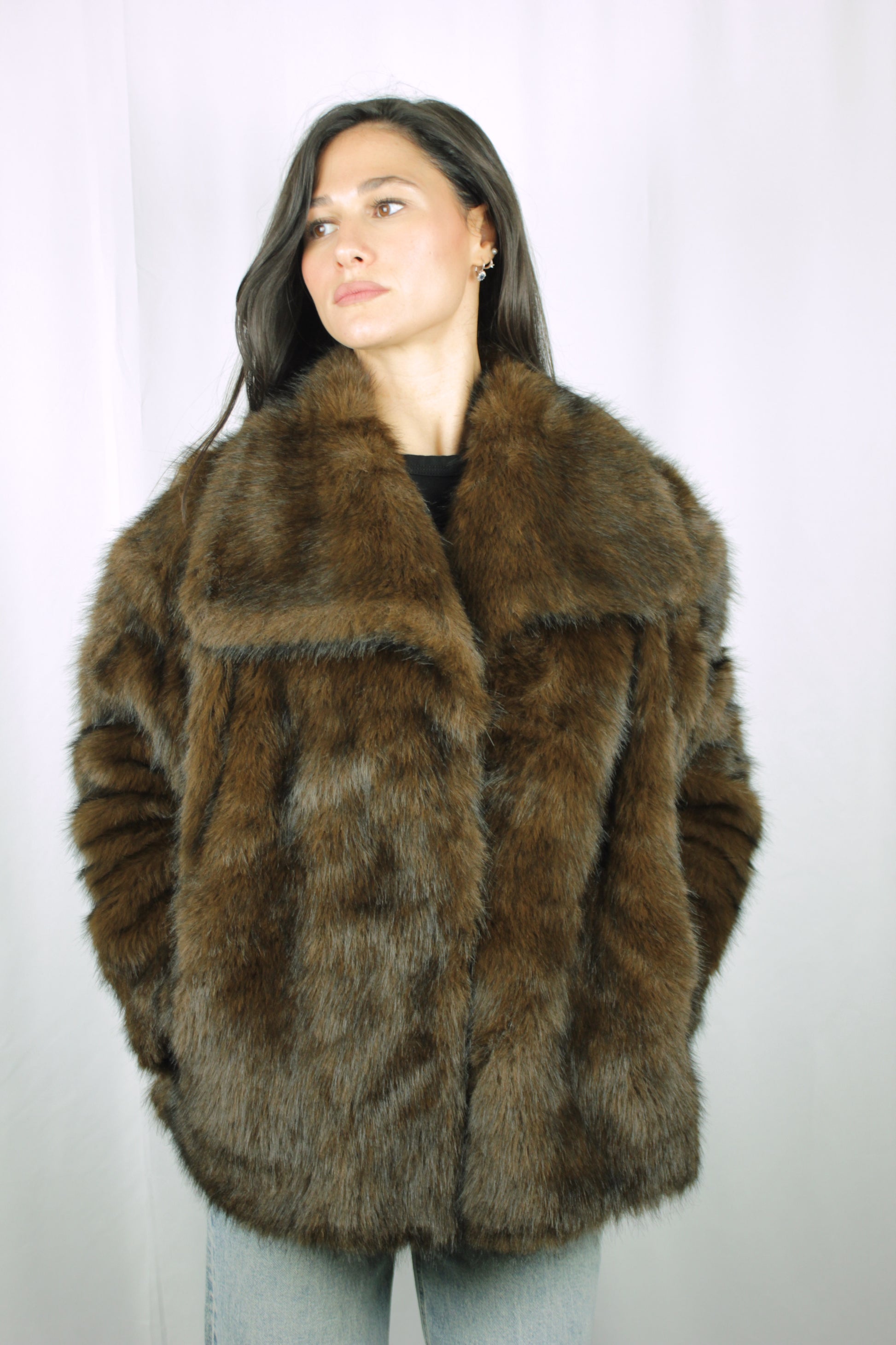 Giacca corta ecopelliccia Marrone
